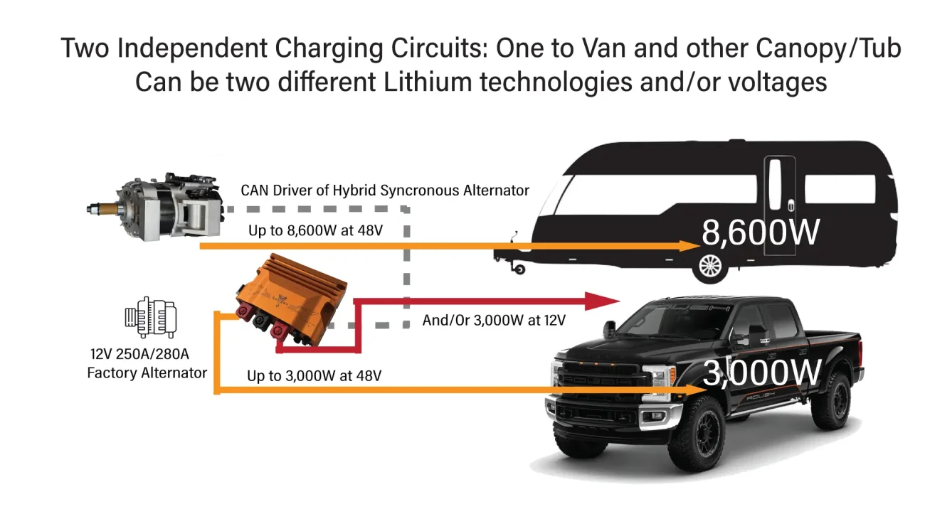 Hybrid Alternator runs at 8kW for 2 hours till 48V Lithium batteries are full no CAN BMS on Battery